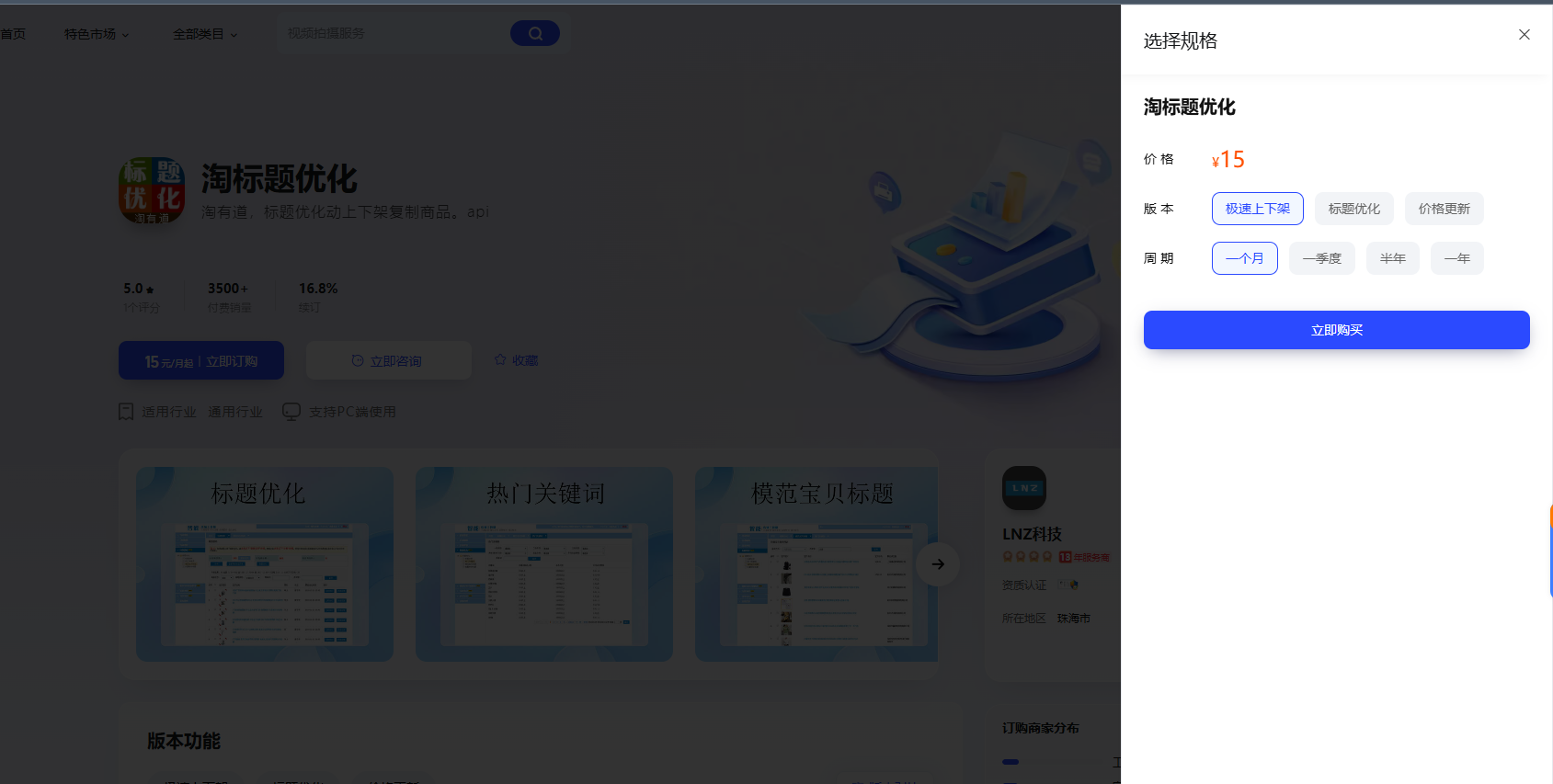 1、通过购买链接,在千牛应用市场购买对应的应用。